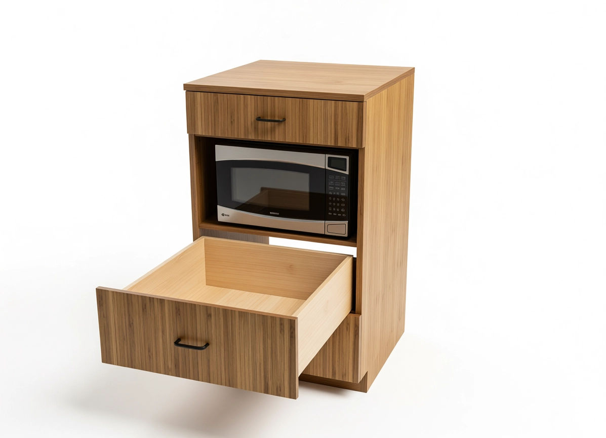 In addition to the Microwave bay, the cabinet includes three FULL LENGTH storage drawers, each designed to make organization effortless: